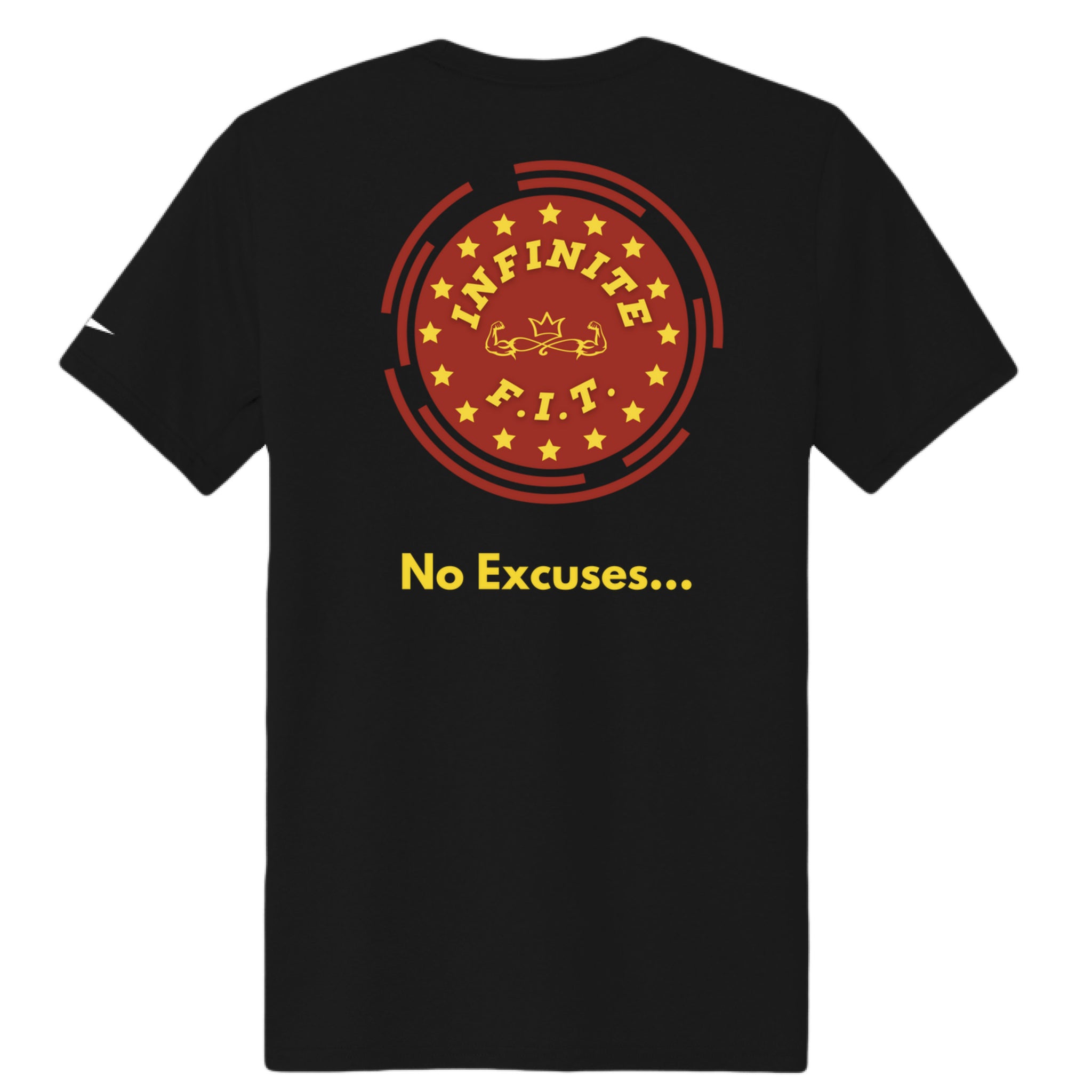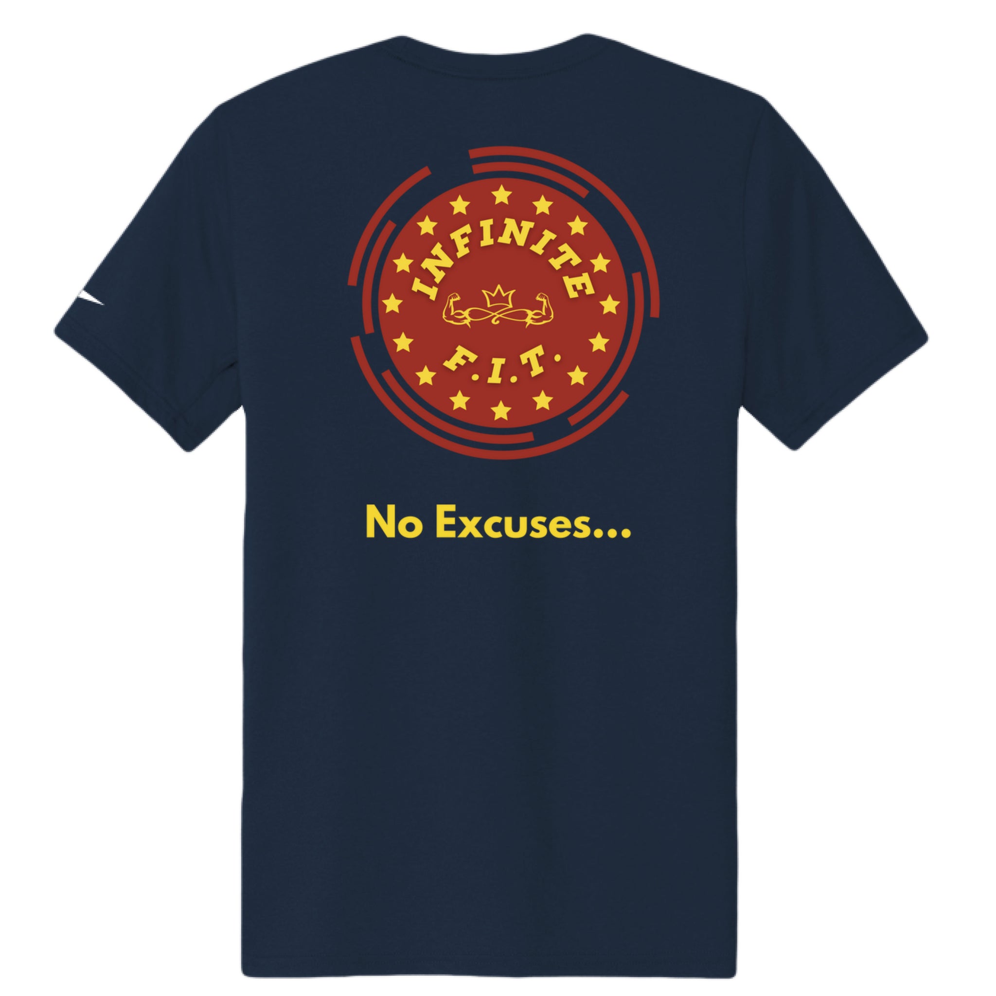 - Contrast heat transfer Dri-FIT logo at right hem